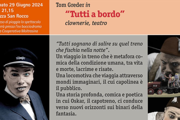 Seconda serata: sabato 29 giugno 2024 alle ore 21:15 in Piazza San Rocco, TUTTI A BORDO di e con Tom Greder.